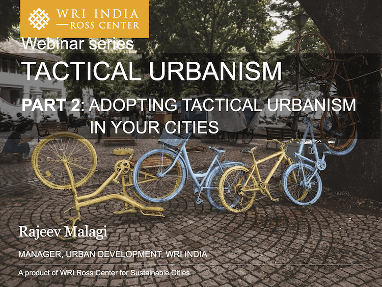 The second part of the Tactical urbanism: What, Why and How? took place on 08th of March 2020. This second part was also organised by the Wuppertal Institute in partnership with the World Resources Institute – India, and presented as a part of the Urban Pathways project, which is funded by the German Federal Environment Ministry through the International Climate Initiative (IKI).